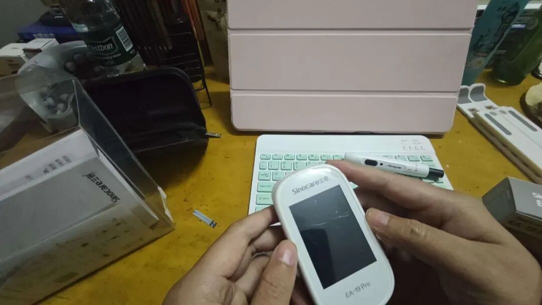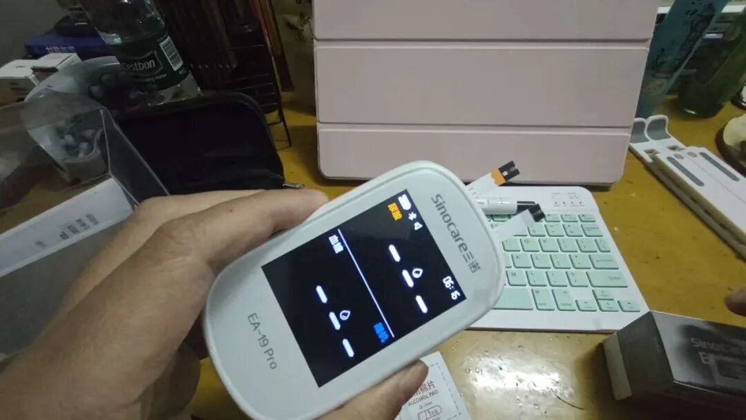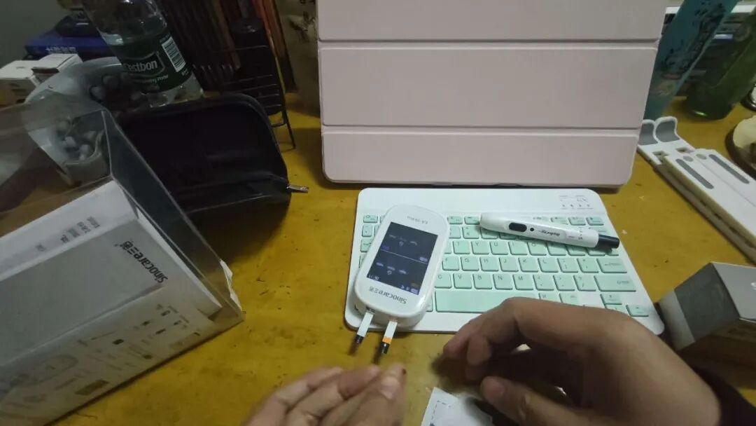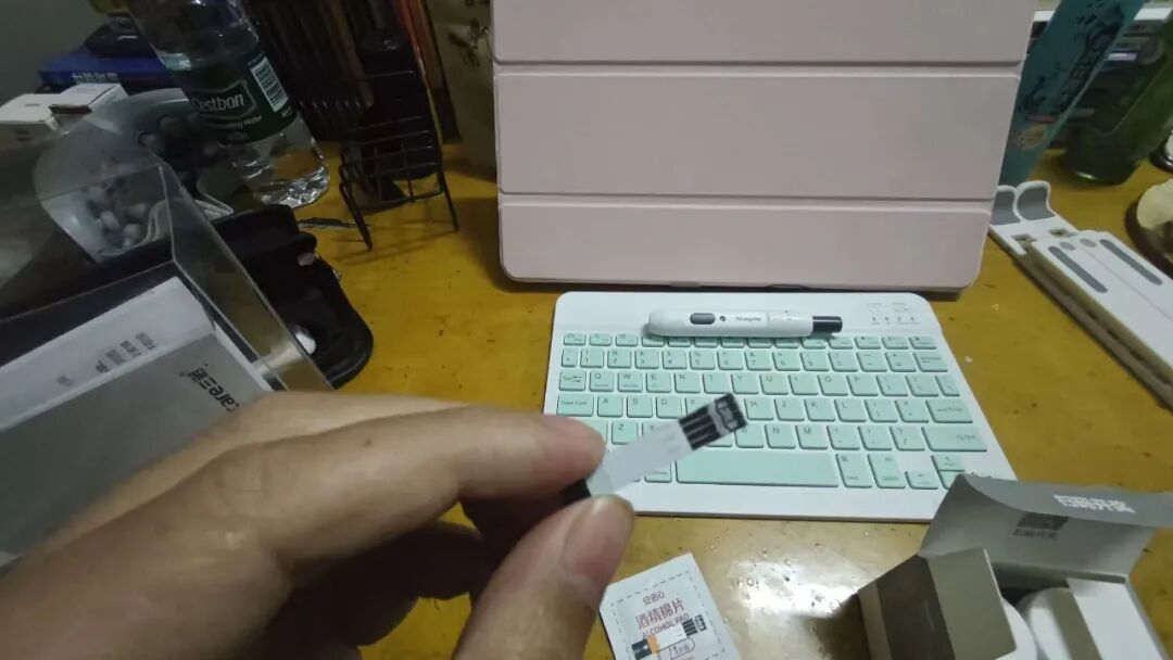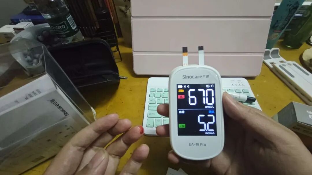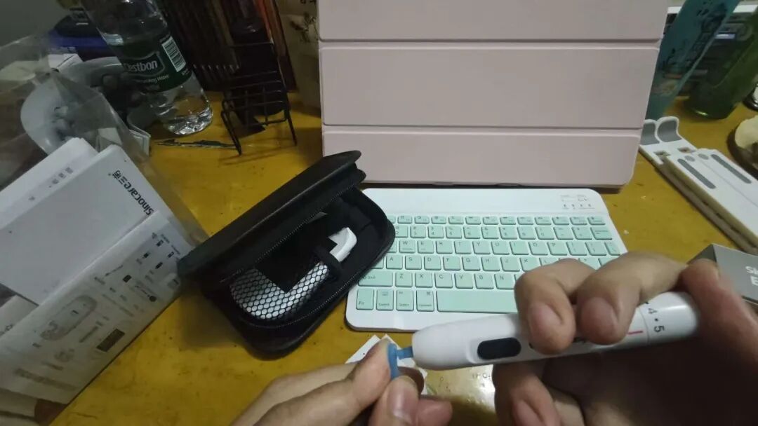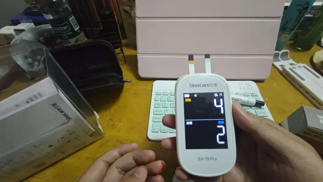 第1步,拿出【国产】的检测仪器,进行尿酸和血糖的检测