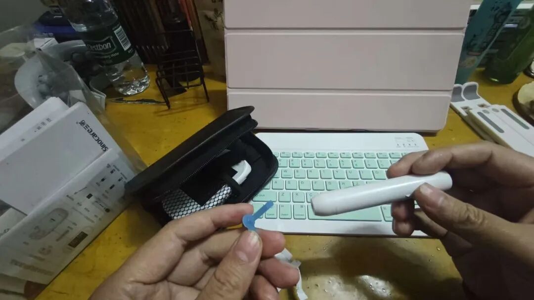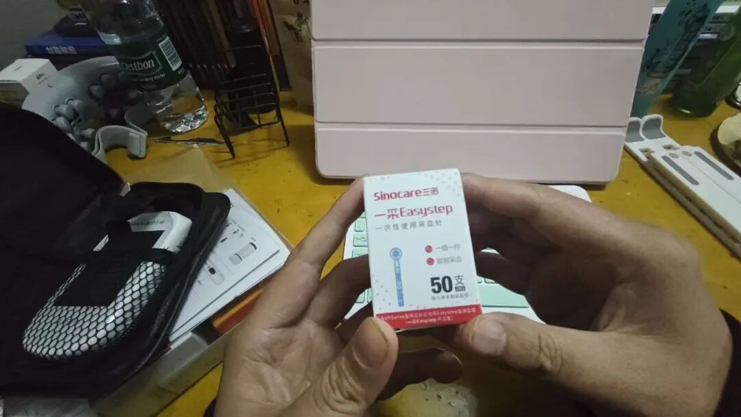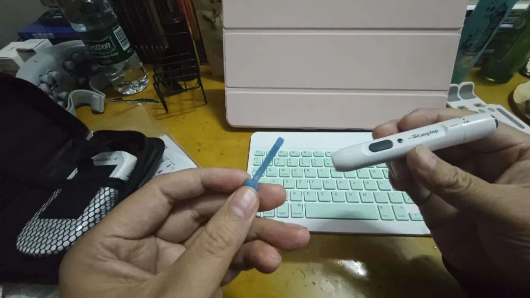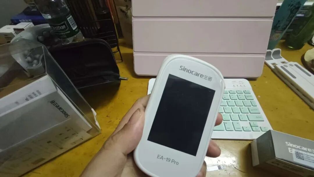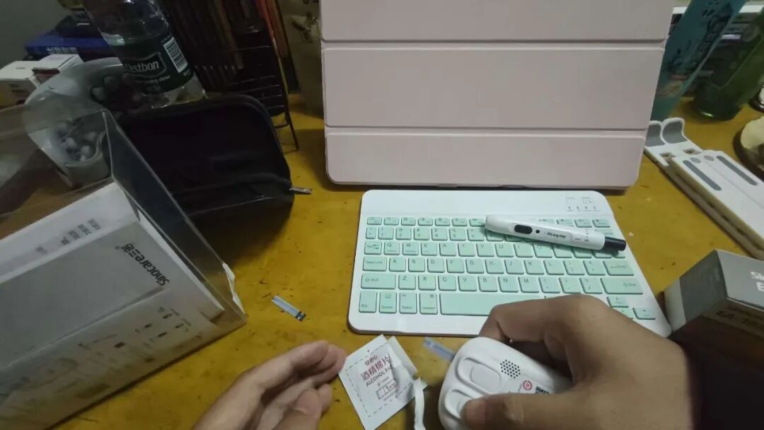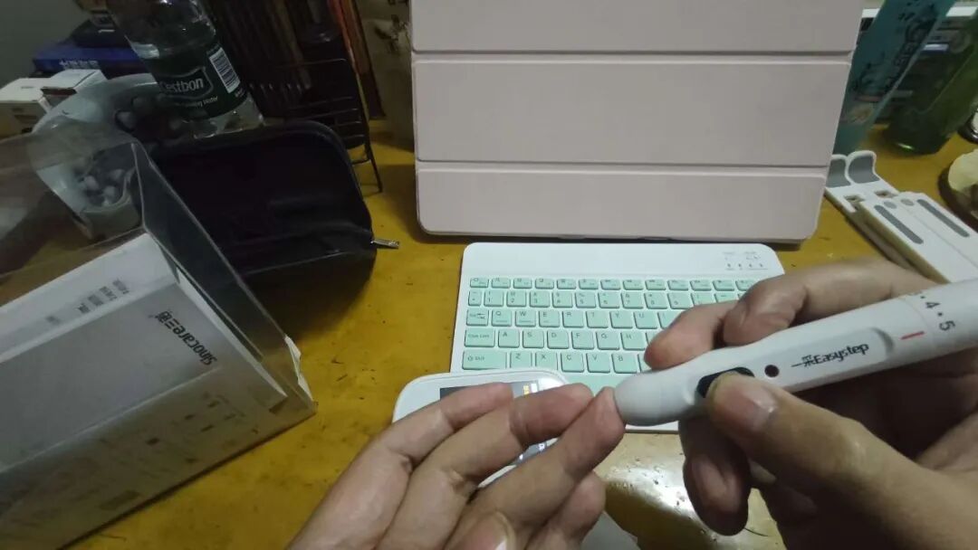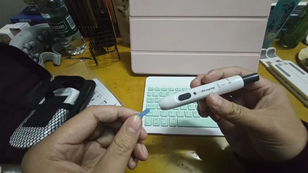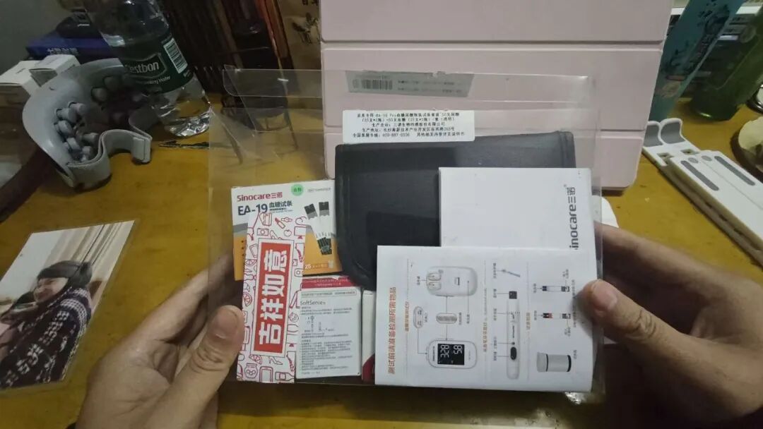 第1步,拿出【国产】的检测仪器,进行尿酸和血糖的检测